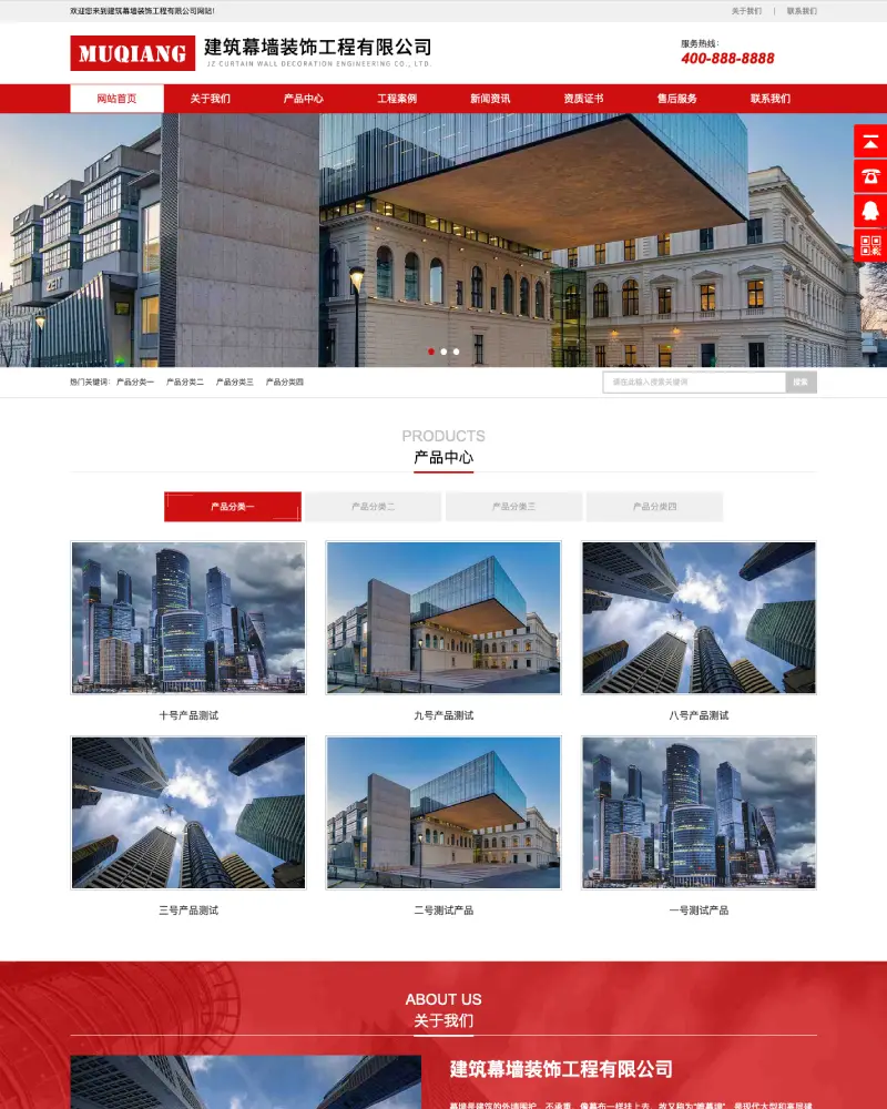 响应式红色建筑装饰网站模版